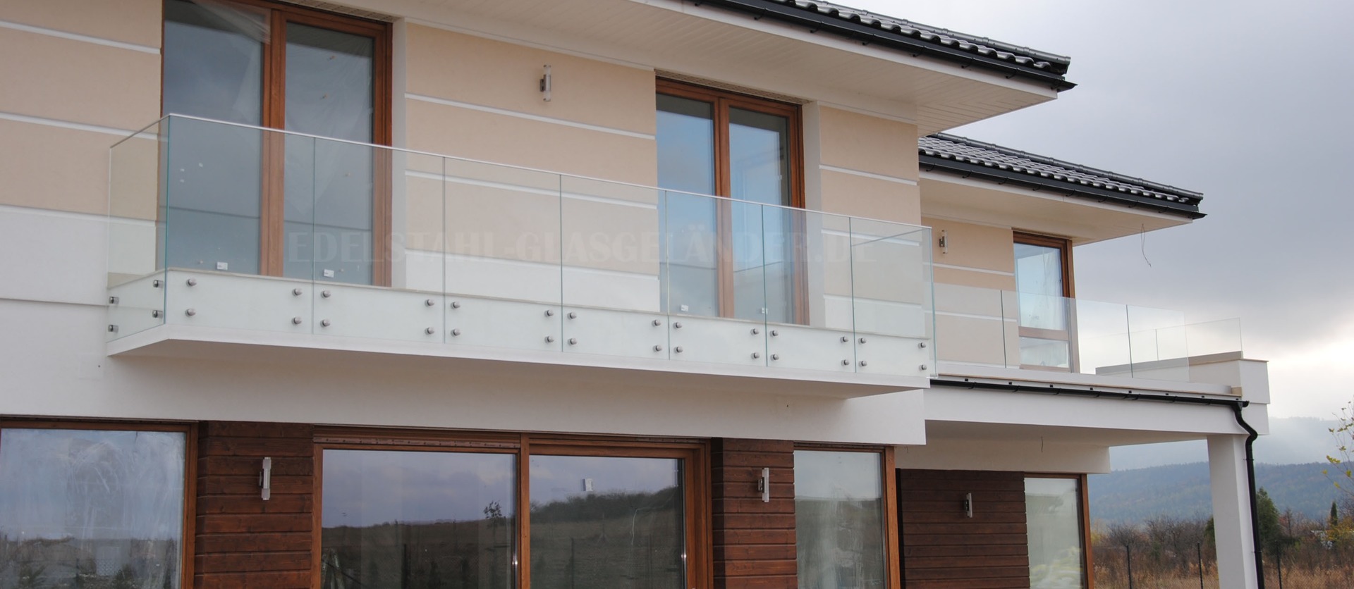 - Glasgeländer in verschiedenen Farben, Glasstärke – 8 bis 20mm (VSG-Glas; VSG-ESG Glas zusätzlich gehärtet)